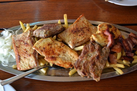 Есть ещё мясные лавки, именуемые mesara, где отличный выбор мяса, которое тут же при вас зажарят на гриле (не электрическом, между прочим). Приготовление может быть как бесплатным - gratis, так и за небольшую дополнительную плату, около 1 евро за килограмм мяса.