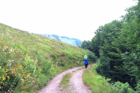 Скоро подъем заканчивается и мы выходим на поляну. Туман начинает сгущаться, а еще и половина пути не пройдена.