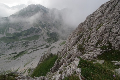 Довольно быстро нас окутало облако, и тропа стала едва различима. В условиях такой видимости появились сомнения, стоит ли идти дальше.