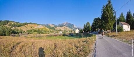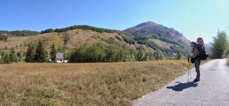 Обратный вид на долину с сёлами Мокро и Веруша (где-то здесь мы должны были свернуть в сторону озера. Но как выяснилось позже мы пропустили указатель):