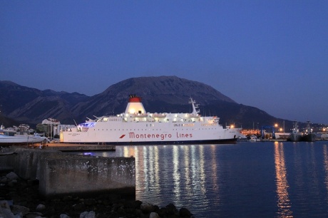 Порт обслуживает паромную переправу между Черногорией и Италией, на этом пароме мы плыли в Италию: