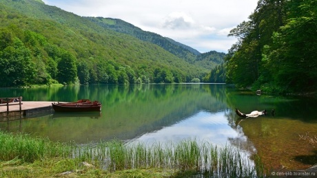 Оказавшись здесь, первым делом, надо совершить местный ритуал — пройти на плот, который выдержал не один табун туристов, чтобы в полной мере насладиться красотой озера, окруженного горами и лесами. «Красота то какая, ляпота».