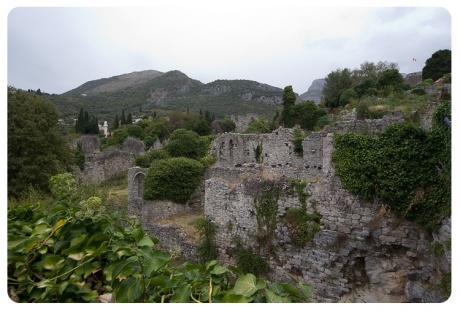 Доехали до Бара. Новый город абсолютно ничем не примечателен. Книга-путеводитель и предварительно проштудированный интернет обещали обилие дешевых итальянских шмоток, ибо Бар — город портовый, и находится аккурат напротив итальянского Бари. Не нашли: то ли врут путеводители, то ли туристический сезон уже кончился, а вместе с ним и обилие шмоток :) Впрочем, кой-чего накопали. Но не за шопингом же мы приперлись. Поехали искать Старый Бар. С указателями в Черногории не то, чтобы совсем хорошо. И карта довольно примерная, особенно в части некрупных дорог. Поэтому по шоссе до поворота на Старый Бар мы добрались. Но съехав с шоссе на более мелкую дорогу уперлись в развилку без каких бы то ни было указателей... Сначала повернули направо, потом интуитивно почувствовали, что едем не туда и развернулись. Потом еще раз проделали примерно такой же финт ушами — и таки добрались до подножия Старого Бара. Не буду говорить, что я еще не совсем привык к машине, а дороги узкие и сравнительно горные (сравнительно — потому что на следующий день пришлось кататься уже по действительно горным дорогам)... В общем, я развлекался, как мог :) Старый Бар почти полностью разрушен землетрясением 1979 года. То есть абсолютно, не у всех домов стены целы хотя бы наполовину. ![]()