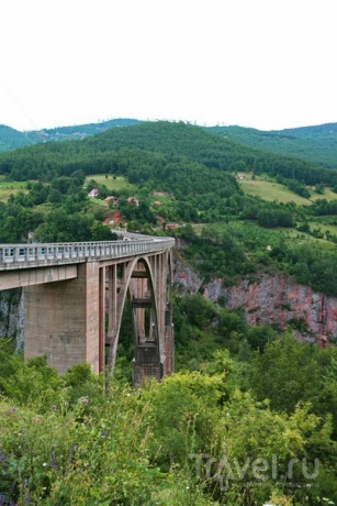 Вот, пролетели указатель на национальный парк Дурмитор и въехали в "столицу" самого известного горнолыжного региона Черногории - городок Жабляк. Он отстроен в стиле горнолыжного курорта "советской Югославии". Но наш путь лежал дальше, к реке Тара и, к сожалению, ни Дурмитор, ни Жабляк мы не посетили по указанной выше моей ошибке. Повернув в сторону Мойковаца, мы разогнались до сотенки и, пролетев двух гаишников с полуопущенным радаром, через 20 минут оказались на мосту через каньон реки Тара (протяженность реки 144 километра).